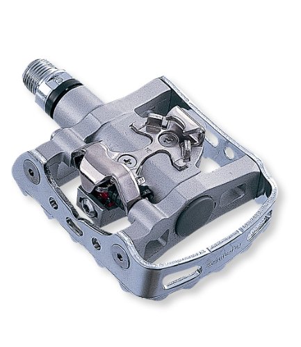 This two-sided pedal combines the convenience of a traditional pedal and the efficiency and performance of a clipless pedal. One side is a traditional flat platform, rideable with an ordinary noncleated shoe; the other has a cleat binding for the SPD; (Shimano Pedaling Dynamics) integrated shoe and pedal system. This versatile design is great for hybrid or comfort-bike cyclists or for entry-level users of the SPD pedal system. Cleat tension is adjustable. Sealed mechanism and serviceable bearings. Imported. Weight 18.7 oz.Available at Amazon Check Price Now!